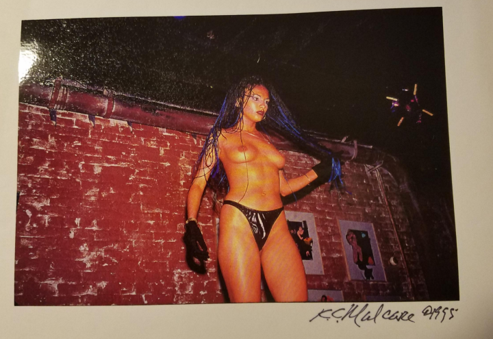 Worn down from the midtown gentlemen’s clubs, Delgado started working at the Blue Angel to express herself more freely and comfortably while still earning a living. There, she performed cabaret and lap dances in a communal room in the back which she remembers as safe, fun, and lucrative. She was making an average of $600 a night.